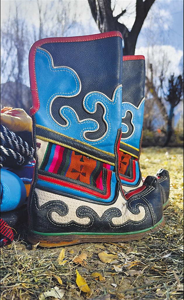堆龍德慶區(qū)覺木隆派藏戲演員表演時穿的藏靴。(圖片均由拉薩市文化和旅游局提供)