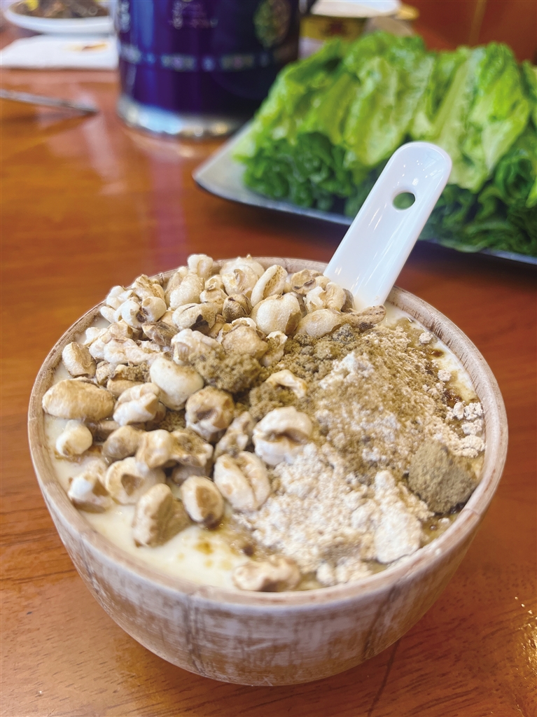 當(dāng)然,來到西藏一定得嘗嘗這里的牦牛酸奶。由純牦牛奶發(fā)酵而成,口感濃稠細(xì)膩,奶香濃郁,營養(yǎng)豐富。通常,原味的牦牛酸奶味道偏酸,需搭配白糖一起食用,也可以根據(jù)個人口味加入蜂蜜、炒青稞、人參果等,口感更加豐富、易接受。