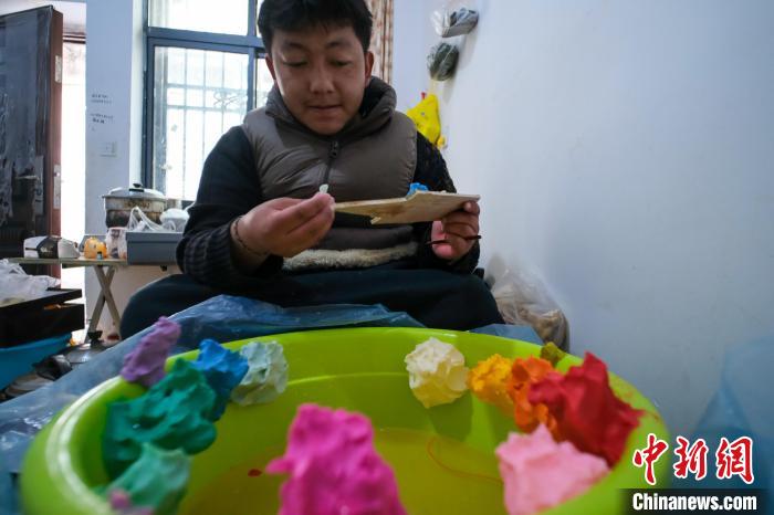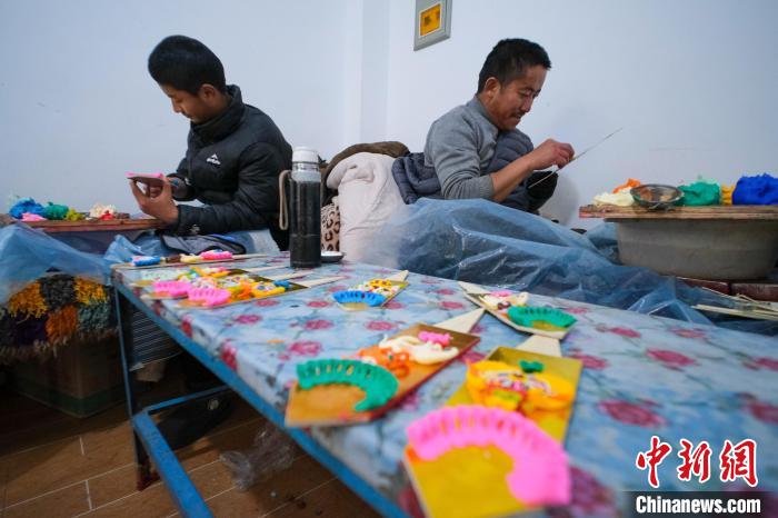 “我大概從初中一年級開始,每年藏歷新年前都和父親來拉薩捏酥油花,除了種地和打工,酥油花是我們家的主要收入來源?!?月20日,在拉薩市城關(guān)區(qū)吉崩崗街道一出租房內(nèi),24歲的大學生扎西歐珠對中新社記者講述寒假捏制酥油花的經(jīng)歷。