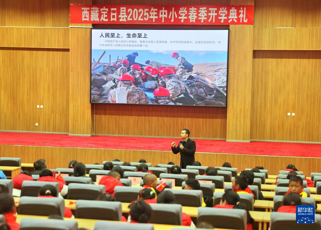 張艾平授課的主題是《從定日地震救援看中國速度》,他帶著學(xué)生回顧震后八方支援的動人細(xì)節(jié)?!氨敬伍_學(xué)第一課以生動活潑的形式,通過一個個鮮活的案例,講出了中國精神、中國力量和中國溫度,增強了學(xué)生的家國情懷?!蔽鞑刈灾螀^(qū)教育廳思政處副處長韓利君說。