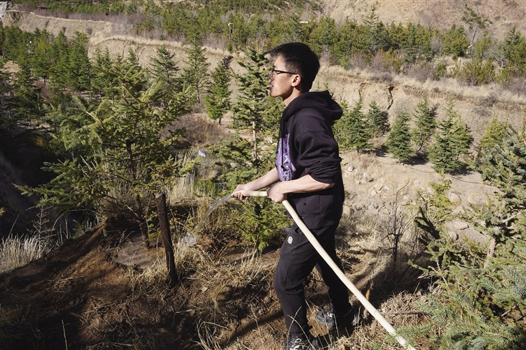 “你看那邊,再看那邊,現(xiàn)在都綠了?!崩_市南山公園安全負責人、護林員扎西曲培手指著南山自豪地說道,2012年他拍了一張照片,這兒只是一片荒山,滿地都是石頭,現(xiàn)在綠樹滿山,而且公園里的油松、白皮松、側柏等樹種已經繁衍出了“樹二代?!薄?/p>