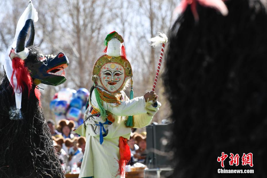 3月16日,西藏拉薩迎來一年一度的傳統(tǒng)春耕儀式。當(dāng)日,拉薩市曲水縣色達(dá)村村民身著節(jié)日盛裝,相聚在田間,載歌載舞,共同迎接春耕第一犁。家家戶戶端著自家的“切瑪”(象征五谷豐登)帶著青稞酒、酥油茶等物品聚在田間,互敬青稞酒,開始撒種,祈求全年風(fēng)調(diào)雨順、五谷豐登。圖為曲水縣色達(dá)村春耕儀式現(xiàn)場,當(dāng)?shù)孛癖姳硌輫壹?jí)非物質(zhì)文化遺產(chǎn)《吉祥仲孜》。中新社記者 貢嘎來松 攝