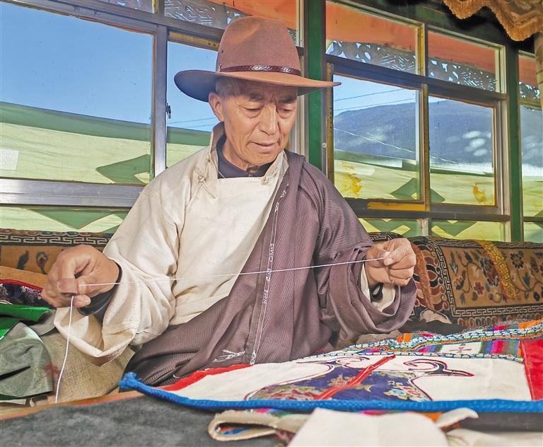 達(dá)布林耐家族裁縫技藝集藏裝、藏戲服飾、寺廟用品及農(nóng)牧用具制作于一體,是墨竹工卡早期裁縫技藝的杰出代表,凝聚著深厚的文化底蘊(yùn)與藝術(shù)價值。秉持著純手工制作、質(zhì)量至上的理念,每一件出自達(dá)布林耐家族裁縫之