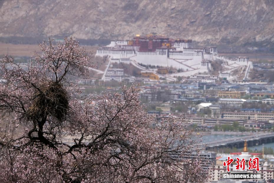 3月下旬,高原已是一片春意。西藏拉薩市區(qū)拉薩河南岸慈覺(jué)林的古桃樹(shù)進(jìn)入盛花期,3月30日恰逢周末,不少市民游客前往賞花“打卡”,在桃樹(shù)下野餐等,享受高原春日風(fēng)光。圖為3月30日,拉薩慈覺(jué)林盛開(kāi)的桃花和遠(yuǎn)處的布達(dá)拉宮。江飛波 攝