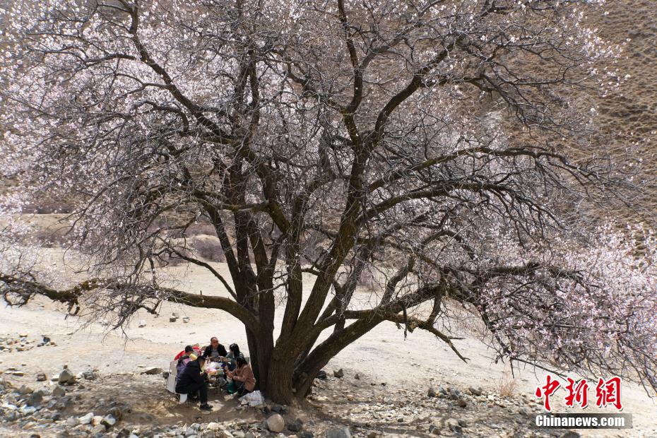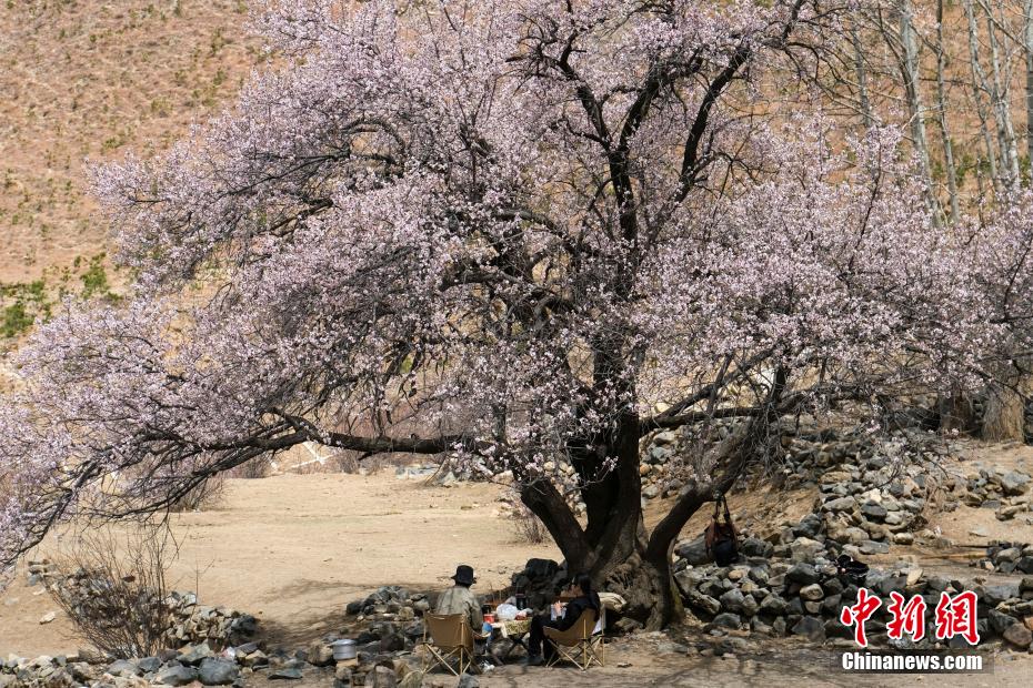 3月下旬,高原已是一片春意。西藏拉薩市區(qū)拉薩河南岸慈覺(jué)林的古桃樹(shù)進(jìn)入盛花期,3月30日恰逢周末,不少市民游客前往賞花“打卡”,在桃樹(shù)下野餐等,享受高原春日風(fēng)光。圖為3月30日,民眾在拉薩慈覺(jué)林桃花樹(shù)下野餐,享受悠閑時(shí)光。江飛波 攝