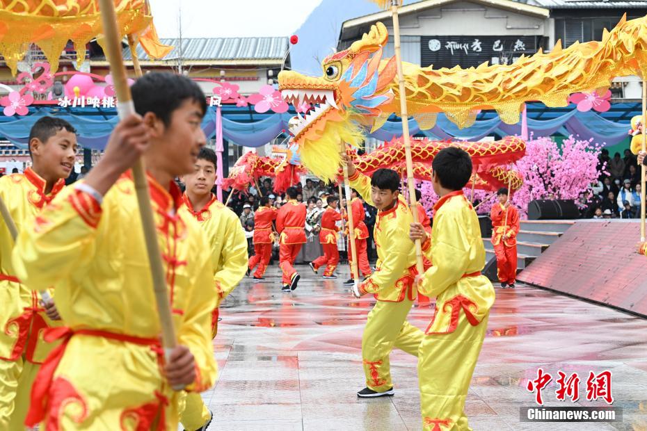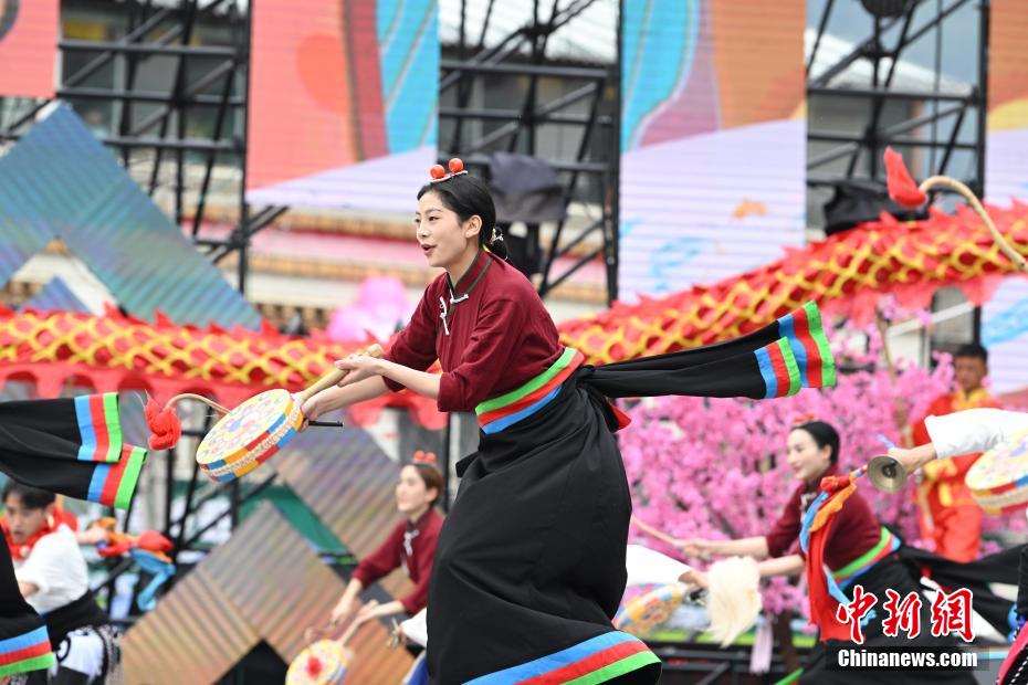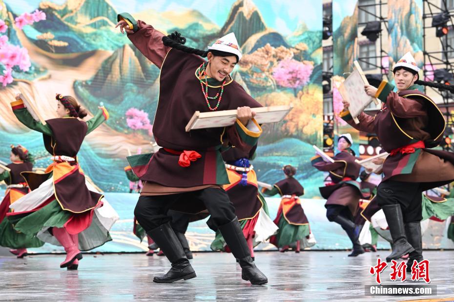 4月1日,西藏自治區(qū)林芝市第二十二屆桃花旅游文化節(jié)波密縣分會場熱鬧開場。本次分會場以“冰川映桃韻波密醉春風”為主題,亮點紛呈。開幕式上,極具特色的西藏原生態(tài)歌舞、非遺藏紙舞蹈,生動演繹出雪域文化的迷人風情;嶺南龍獅與藏族熱巴鼓相遇,剛柔并濟,奏響民族團結的和諧樂章;“冰川王子”與“桃花仙子”領舞,各族民眾翩然起舞,現(xiàn)場氣氛熱烈?;顒蝇F(xiàn)場,除了精彩文藝演出,特色美食、民俗文化展示區(qū)也吸引眾多游客駐足。大家一邊品嘗當?shù)孛朗常贿吀惺苊袼孜幕攘?。?jù)悉,桃花節(jié)將持續(xù)至4月中旬,期間波密縣還安排多場專題活動,誠邀各地游客前來,共赴這場春日浪漫之約。圖為開幕式上表演的舞蹈《鼓韻花開龍獅賀》。中新社記者 貢嘎來松 攝