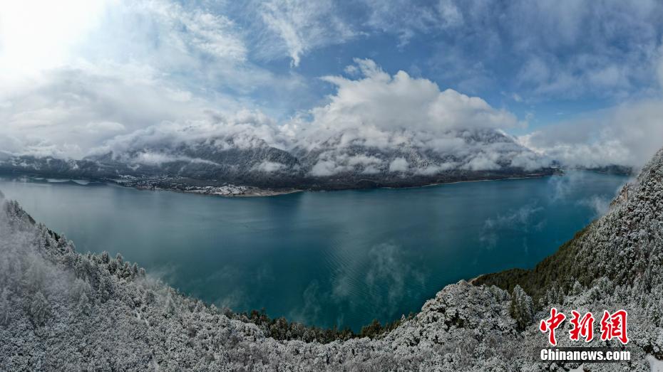巴松錯(cuò)位于西藏林芝工布江達(dá)縣境內(nèi),地處巴河上游的高山峽谷中,是西藏首個(gè)自然風(fēng)景類國家5A級旅游景區(qū)。4月5日,巴松錯(cuò)迎來一場春雪,雪后四周原始森林猶如蒙上潔白面紗,湖面宛如一面藍(lán)寶石鑲嵌其中,風(fēng)光如畫。圖為4月5日,巴松錯(cuò)與四周的原始森林和雪山風(fēng)光。中新社記者 江飛波 攝