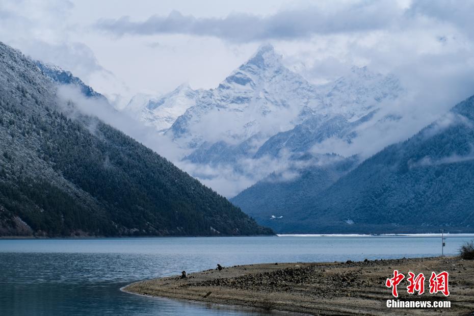 巴松錯(cuò)位于西藏林芝工布江達(dá)縣境內(nèi),地處巴河上游的高山峽谷中,是西藏首個(gè)自然風(fēng)景類國家5A級旅游景區(qū)。4月5日,巴松錯(cuò)迎來一場春雪,雪后四周原始森林猶如蒙上潔白面紗,湖面宛如一面藍(lán)寶石鑲嵌其中,風(fēng)光如畫。圖為4月5日,巴松錯(cuò)與遠(yuǎn)處的雪山風(fēng)光。中新社記者 江飛波 攝