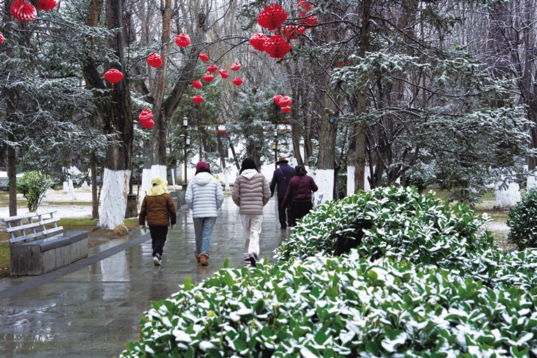 四月,原該是杏花微雨的季節(jié),而拉薩卻意外地飄起了雪花。突如其來的一場春雪讓不少人重新裹上了厚厚的棉服,同時(shí),也給這座古老的城市換上了與眾不同的“春裝”。