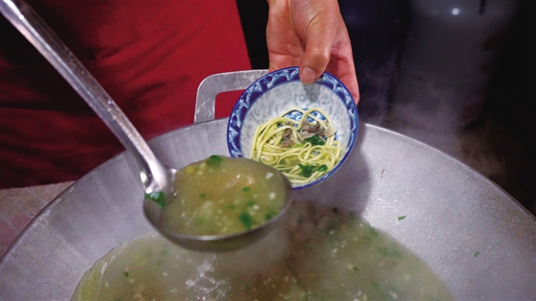 2010年,鹽井加加面被列入西藏自治區(qū)級非物質(zhì)文化遺產(chǎn)代表性名錄。37歲的果拉卓瑪,是這項技藝的傳承者之一。她回憶道,早年父母在街邊支攤賣面時,加加面只是再尋常不過的一道家常面食。如今,這碗面被賦予了文化符號的意義——食客們比拼碗數(shù),最高紀錄達147碗,若破紀錄,還能終生免費吃面?!笆^計數(shù)、民歌敬酒,這些傳統(tǒng)習俗讓吃面變成了一場熱鬧的儀式?!惫楷斝χf。