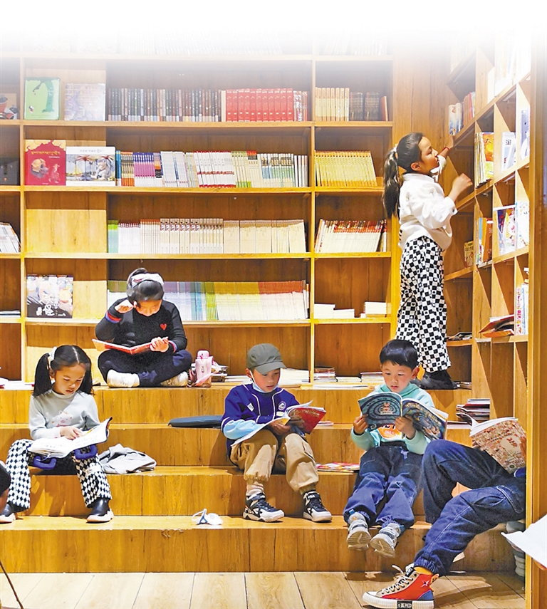 小朋友們在央喜書吧閱讀書籍。記者 曉勇 攝