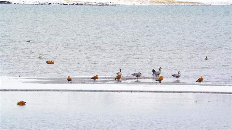野鴨棲息在林周縣卡孜水庫(kù)。 圖片由記者 央金 林周融媒 提供