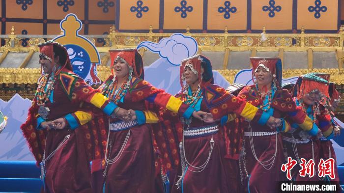 圖為西藏阿里地區(qū)札達(dá)縣退休老干部宣舞隊(duì)表演古格宣《洛欽白瑪次仁》。貢桑拉姆 攝