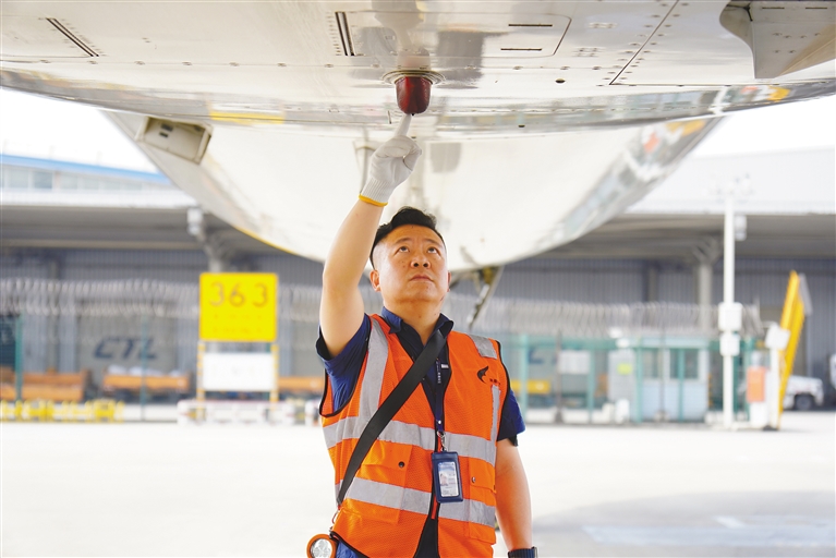 “因?yàn)槲业募亦l(xiāng)挨著機(jī)場,從小就看著飛機(jī)起起落落。后來知道有飛機(jī)維修這個行業(yè),覺得能親手保障每一架飛機(jī)的安全飛行,是件多么有意義的事情,就一頭扎進(jìn)了這個行業(yè)?!闭劶芭c飛機(jī)維修的緣分,何濤眼中閃著光。