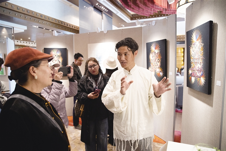 開幕儀式上,亞東縣委常務副書記、常務副縣長,上海市第十批援藏干部人才亞東聯(lián)絡小組組長李夏陽在致辭中表示,三十年間,在多批援藏干部的不懈努力與無私奉獻下,亞東縣在穩(wěn)定、發(fā)展、生態(tài)、強邊等各項工作上都取得了顯著成效,對本次參展藝術家們?yōu)閬問|縣文化傳播的傾情助力,致以誠摯的感謝。藝術家索喃次仁表示,未來將持續(xù)致力于將傳統(tǒng)技藝與現(xiàn)代審美融合,讓古老手工藝煥發(fā)新生,以藝術賦能助力鄉(xiāng)村振興。