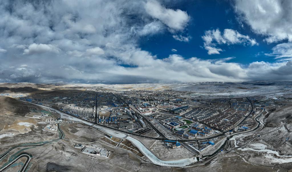 這是2月12日拍攝的那曲城區(qū)(無人機(jī)照片)。鳥瞰這座“云端之城”,一派蒼茫壯闊景象。新華社記者 晉美多吉 攝