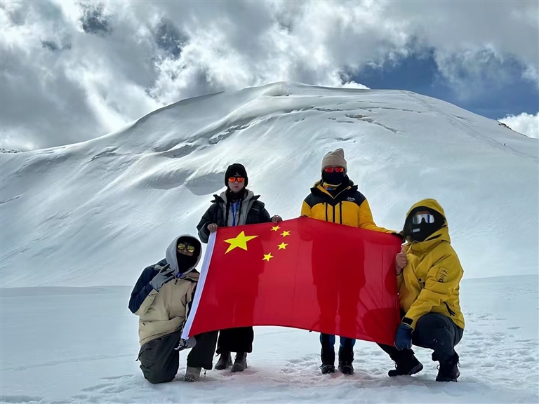 鄒師思告訴記者:“登山過程中,我們團(tuán)隊展現(xiàn)了高度的專業(yè)性與協(xié)作力。學(xué)院領(lǐng)導(dǎo)提前提供物資與精神支持,專業(yè)教練指導(dǎo)徒步與技術(shù)訓(xùn)練。在海拔5500—6000米段,隊伍統(tǒng)一行軍節(jié)奏,避免體溫流失或體力透支;登頂時,訓(xùn)練突出者率先觸頂,為體力較弱者提供鼓勵與幫助。”她感慨:“團(tuán)隊協(xié)作是登頂?shù)年P(guān)鍵,真正的勇氣源于科學(xué)準(zhǔn)備與戰(zhàn)略堅持?!?/p>