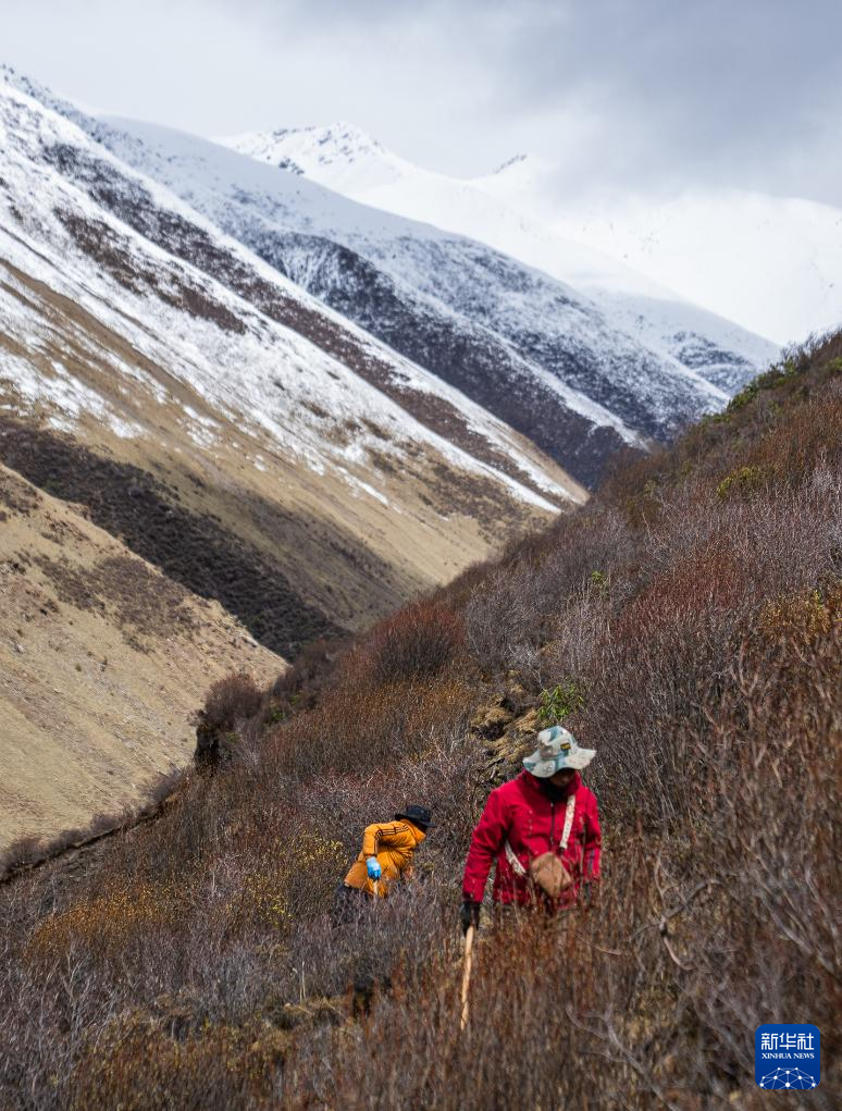 在那曲市索縣西昌鄉(xiāng),牧民在尋覓蟲草(5月18日攝)。新華社記者 丁增尼達 攝