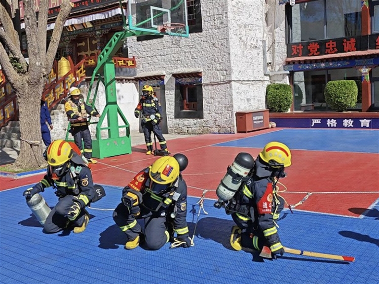 布達(dá)拉宮是一座“文化寶庫(kù)”,對(duì)于這座古老建筑而言,火災(zāi)無(wú)疑是最大的威脅。1984年,一個(gè)消防班入駐布達(dá)拉宮,2018年發(fā)展為消防救援站。該站肩負(fù)著布達(dá)拉宮主體建筑及周邊兩平方公里范圍內(nèi)的防火滅火、應(yīng)急救援、重大安保、為民助民等重任。