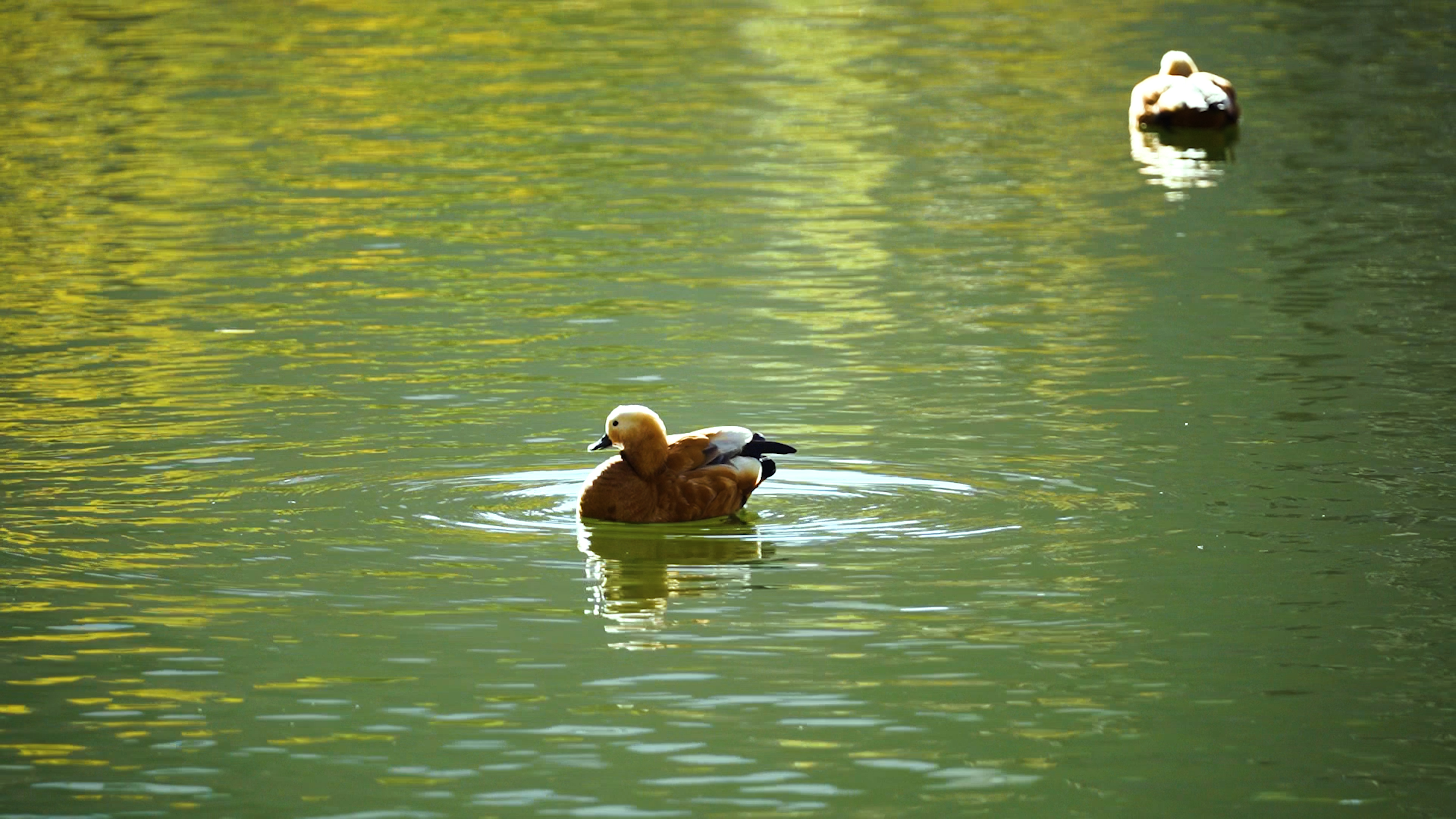 沿著蜿蜒的棧道,向濕地深處走去,清澈的湖水倒映著藍天、白云,仿佛置身于夢幻般的境界。天空中不時有鳥兒飛過,水中的赤麻鴨自由自在地游來游去,赤麻鴨寶寶排成“一”字隊形,緊隨媽媽身后。這里不僅是鳥類棲息的天堂,也是攝影愛好者最佳的觀鳥地。