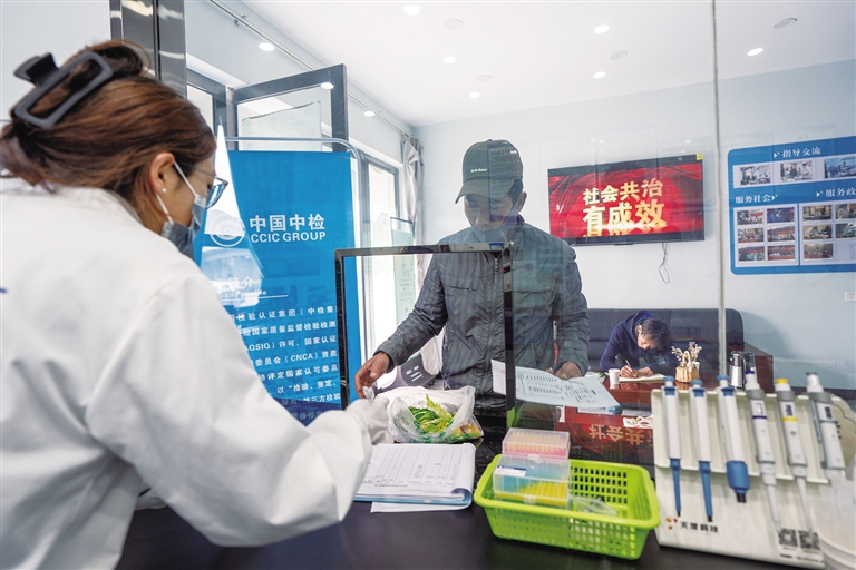 市民前來檢測(cè)站送檢驗(yàn)樣品。
