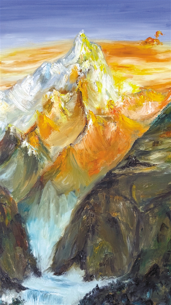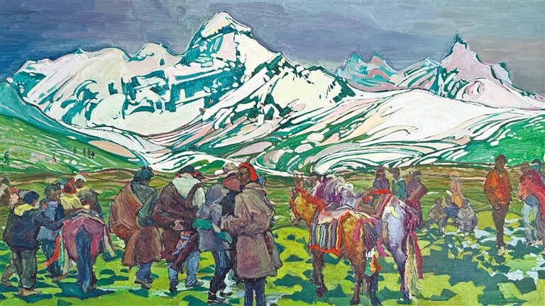 澤巴珍油畫(huà)作品《雪域情》。