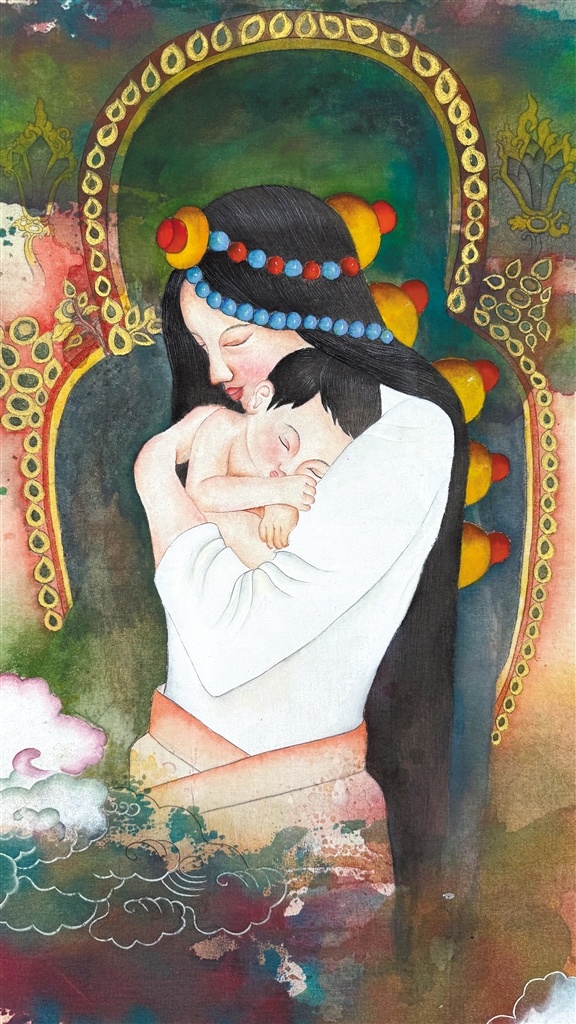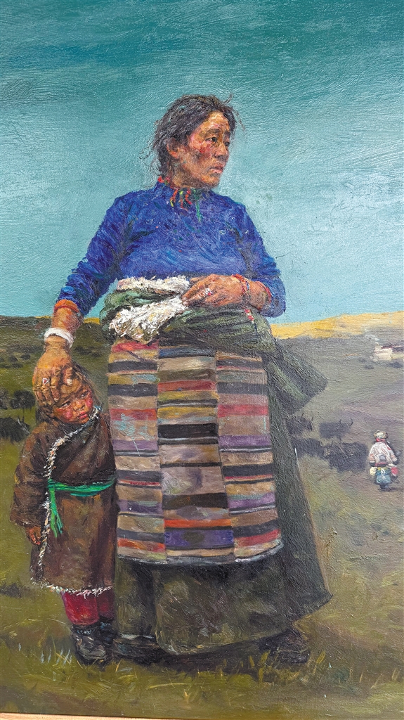 索朗白姆油畫(huà)作品《母與子》。