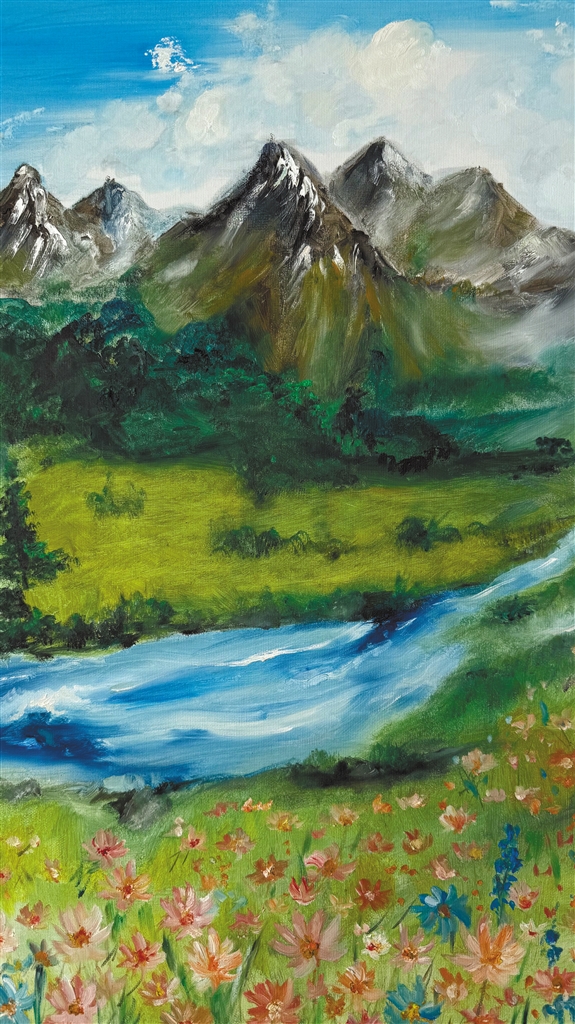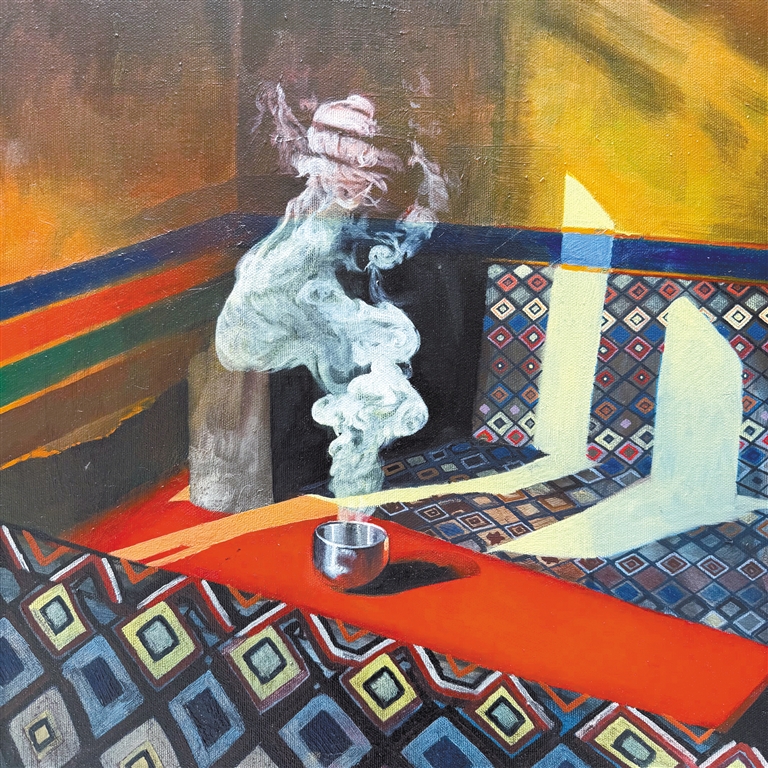 澤巴珍油畫(huà)作品《格桑花愿》。