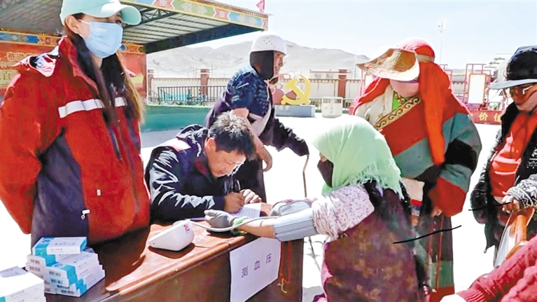圖為專家為群眾檢查身體。記者 永青 洛桑旦增 攝