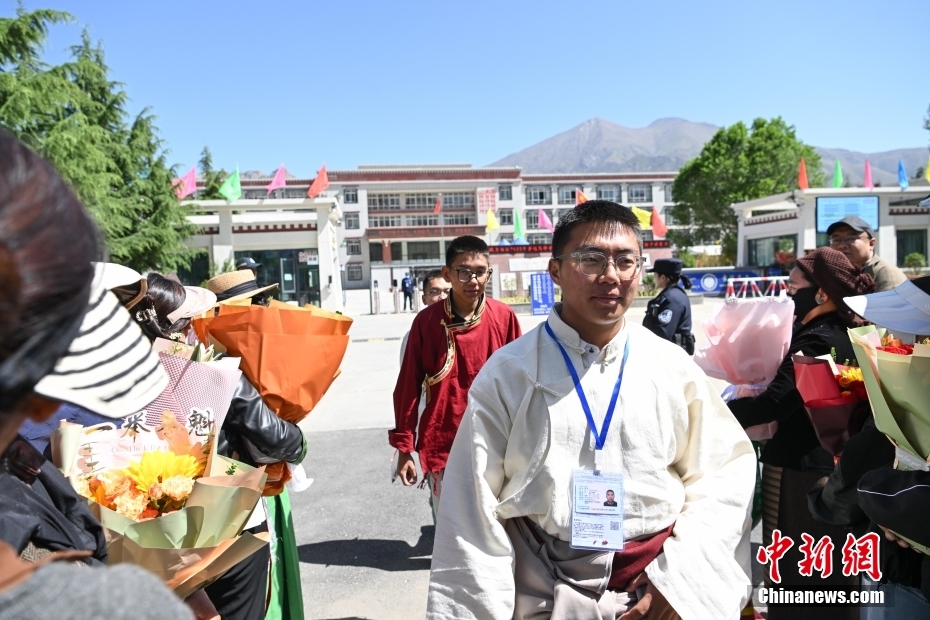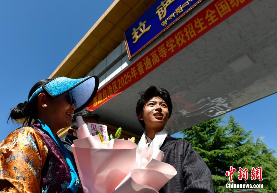 6月9日,西藏拉薩江蘇實(shí)驗(yàn)中學(xué)考點(diǎn)外親友為考生送鮮花。當(dāng)日,西藏自治區(qū)2025年普通高考完成所有科目考試,2025年西藏高考落下帷幕。中新社記者 貢嘎來(lái)松 攝