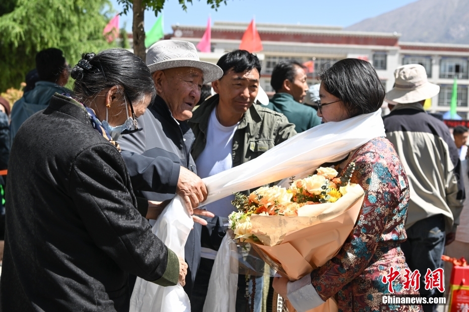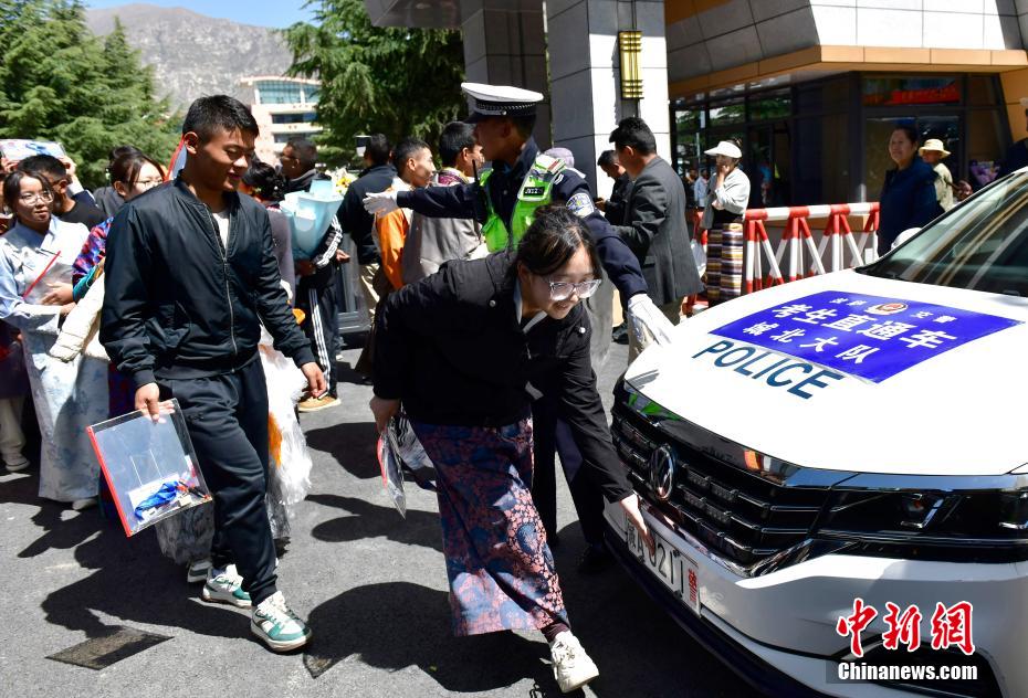 6月9日,西藏拉薩江蘇實(shí)驗(yàn)中學(xué)考點(diǎn)外親友為考生送上哈達(dá)。當(dāng)日,西藏自治區(qū)2025年普通高考完成所有科目考試,2025年西藏高考落下帷幕。中新社記者 貢嘎來(lái)松 攝