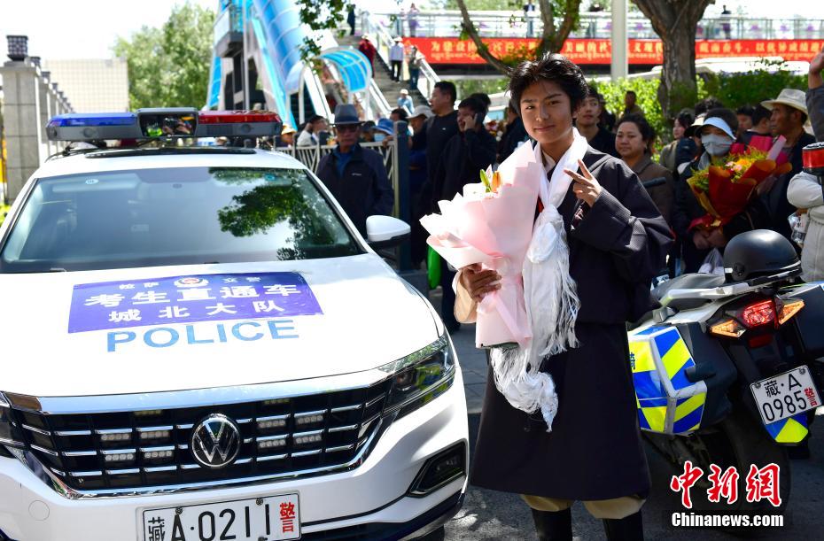 6月9日上午11時(shí)30分,西藏自治區(qū)2025年普通高考完成所有科目考試。圖為考生手捧鮮花在車牌尾號(hào)為“211”和“985”的車輛旁留影。中新社記者 李林 攝