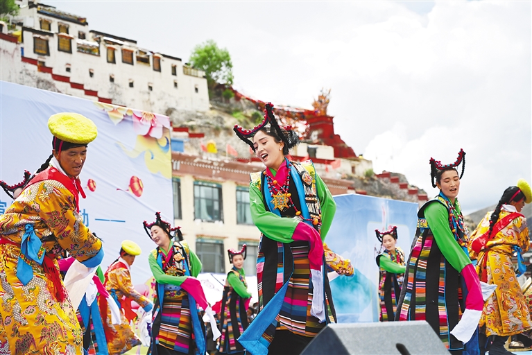 在日喀則市喜迎西藏自治區(qū)成立60周年暨2025年“文化和自然遺產(chǎn)日”非遺宣傳展示活動(dòng)中,來(lái)自全市各縣(區(qū))的19支藏戲隊(duì)輪番展演,各色非遺產(chǎn)品集中亮相,為現(xiàn)場(chǎng)觀眾獻(xiàn)上了一場(chǎng)“非遺盛宴”。