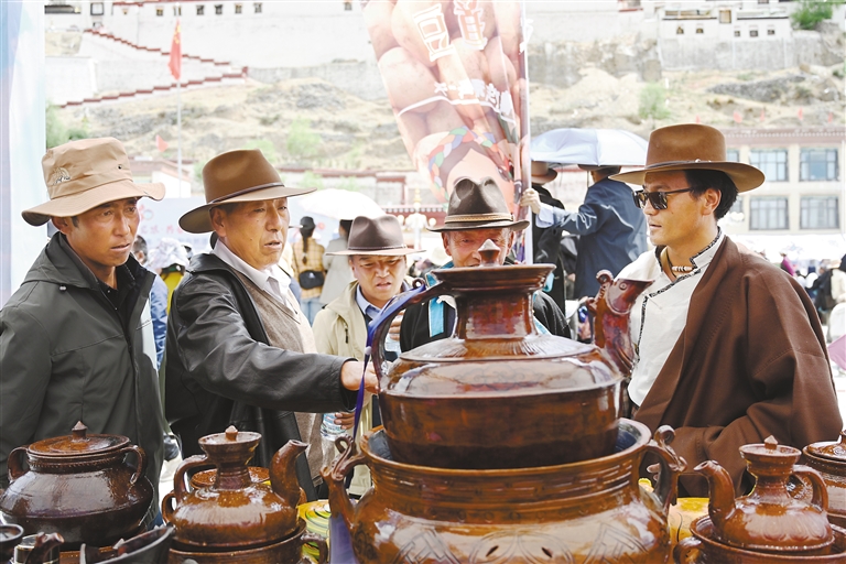 在欣賞視聽(tīng)盛宴的同時(shí),國(guó)家級(jí)非遺項(xiàng)目江孜卡墊織造技藝、自治區(qū)級(jí)非遺項(xiàng)目牛村陶器制作技藝、市級(jí)非遺項(xiàng)目恰哇編織技藝等50個(gè)非遺項(xiàng)目,以及民族手工業(yè)產(chǎn)品、南木林縣縣級(jí)非遺產(chǎn)品集中展覽展銷(xiāo),備受消費(fèi)者青睞。各非遺產(chǎn)品展銷(xiāo)點(diǎn)收入不斷、訂單不斷,經(jīng)初步統(tǒng)計(jì),活動(dòng)現(xiàn)場(chǎng)非遺產(chǎn)品銷(xiāo)售總額達(dá)45萬(wàn)余元。