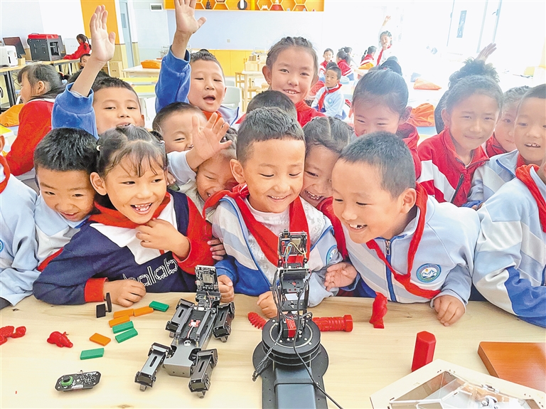 在桑珠孜區(qū)青島小學(xué)的科學(xué)課堂上,智能實(shí)驗(yàn)臺(tái)前圍滿了興致勃勃的孩子,他們手持 3D 打印筆,精心繪制著心中的“太空基地”。作為西藏首個(gè)啟動(dòng)“ STEM ”科學(xué)課程的地區(qū),這里不僅建成了全區(qū)首個(gè)小學(xué)科創(chuàng)實(shí)驗(yàn)室,還被教育部認(rèn)定為西藏唯一的全國(guó)“白名單”科創(chuàng)賽事基層組織單位?!耙郧?,孩子們只能從課本上了解實(shí)驗(yàn),現(xiàn)在能親手操作機(jī)器人、設(shè)計(jì)航天模型。”青島小學(xué)黨支部書記周杰介紹道。科創(chuàng)課程的開(kāi)展,如同一把鑰匙,打開(kāi)了孩子們創(chuàng)新思維和科學(xué)探索的大門,為高原青少年搭建起展示科學(xué)素養(yǎng)與創(chuàng)新能力的舞臺(tái),推動(dòng)當(dāng)?shù)亟逃聵I(yè)邁向新高度。