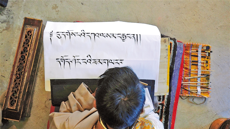 索朗多布杰介紹說,2008年,藏文書法經(jīng)國務(wù)院批準(zhǔn)列入第二批國家級非物質(zhì)文化遺產(chǎn)名錄;2014年,尼赤派書法被列入第四批國家級非物質(zhì)文化遺產(chǎn)名錄擴展項目。