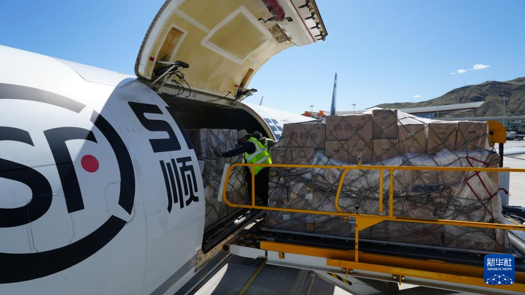 7月10日12點(diǎn)10分,一架載著西藏山南市瓊結(jié)縣小西紅柿、宏農(nóng)藏雞蛋,扎囊縣菜籽油、青稞等農(nóng)特產(chǎn)品的順豐全貨機(jī)從拉薩貢嘎國(guó)際機(jī)場(chǎng)起飛,前往湖北省鄂州市,這標(biāo)志著西藏首條貨機(jī)定期航線正式開(kāi)通。一條連接西藏與華中地區(qū)的“空中金橋”由此貫通。