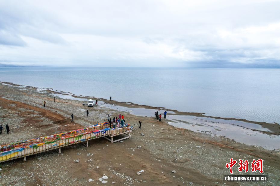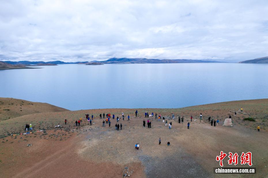 7月22日,游客游覽瑪旁雍錯(cuò)。瑪旁雍錯(cuò)與拉昂錯(cuò)位于西藏阿里地區(qū)普蘭縣境內(nèi),兩湖僅有一堤之隔,卻擁有不同的地理特征和咸淡水之分,因而分別被譽(yù)為“圣湖”與“鬼湖”。每年夏天,兩湖與附近的岡仁波齊一道,吸引眾多游客前來賞景游覽。(無(wú)人機(jī)照片)中新社記者 張祥毅 攝