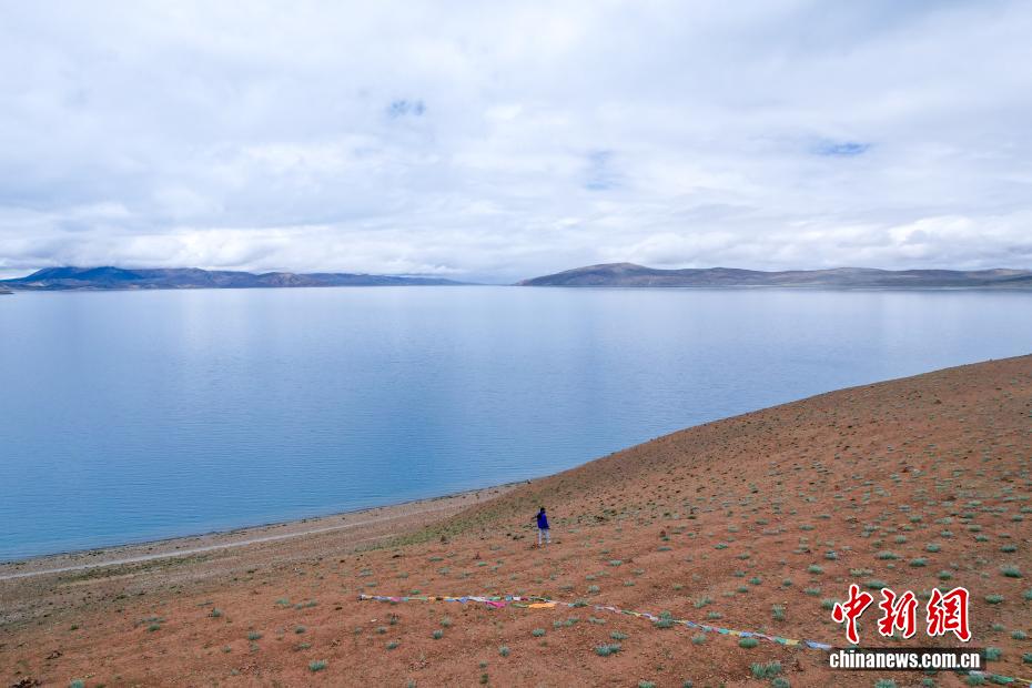 7月22日,游客游覽拉昂錯(cuò)。瑪旁雍錯(cuò)與拉昂錯(cuò)位于西藏阿里地區(qū)普蘭縣境內(nèi),兩湖僅有一堤之隔,卻擁有不同的地理特征和咸淡水之分,因而分別被譽(yù)為“圣湖”與“鬼湖”。每年夏天,兩湖與附近的岡仁波齊一道,吸引眾多游客前來賞景游覽。(無(wú)人機(jī)照片)中新社記者 張祥毅 攝
