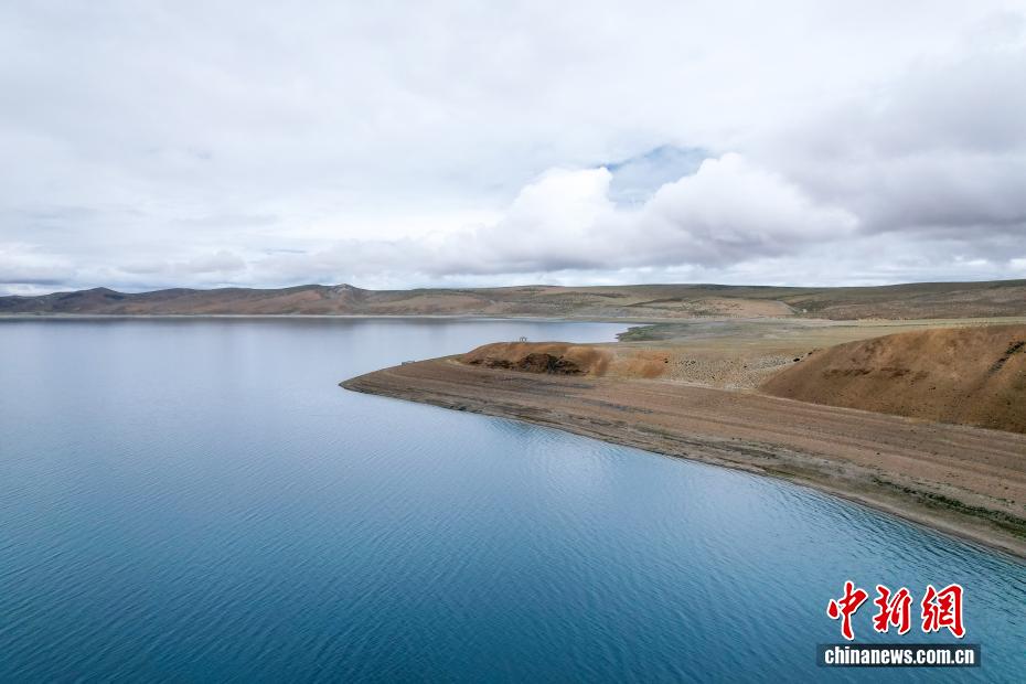 7月22日,航拍拉昂錯(cuò)夏日風(fēng)光?,斉杂哄e(cuò)與拉昂錯(cuò)位于西藏阿里地區(qū)普蘭縣境內(nèi),兩湖僅有一堤之隔,卻擁有不同的地理特征和咸淡水之分,因而分別被譽(yù)為“圣湖”與“鬼湖”。(無(wú)人機(jī)照片)中新社記者 張祥毅 攝