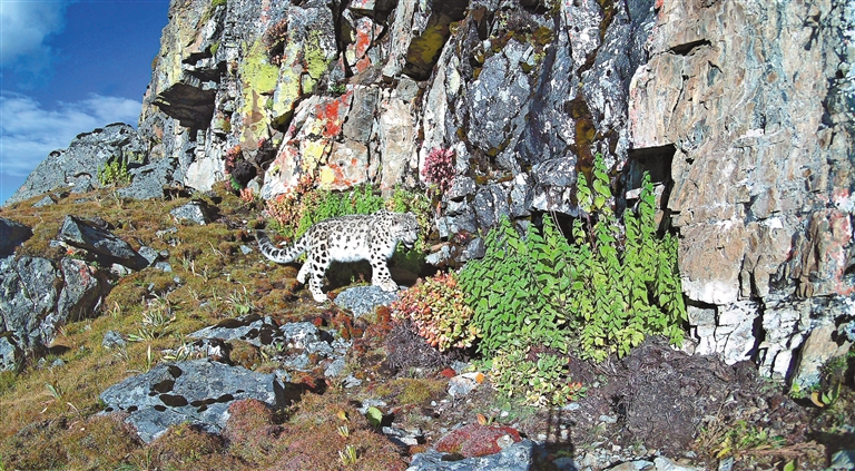 在乃朗谷拍攝到的雪豹。圖片由乃朗生態(tài)文化保護中心提供