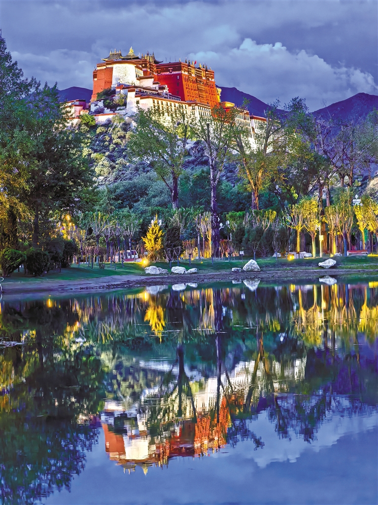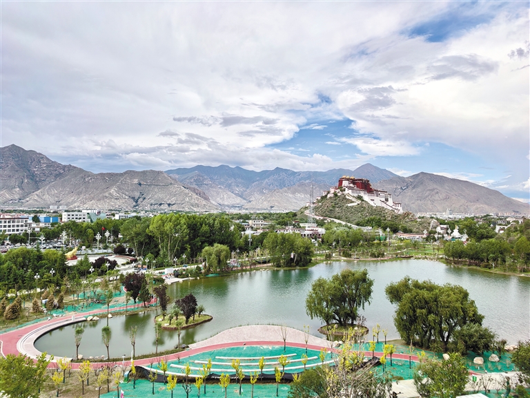 站在藥王山觀(guān)景臺(tái)眺望,重獲新生的水系如綠色飄帶擁抱著布達(dá)拉宮。