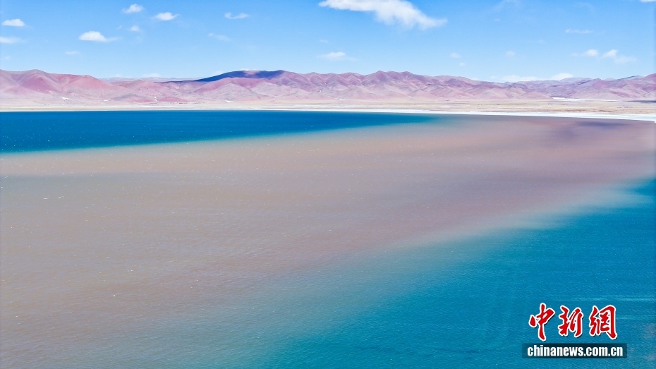 西藏自治區(qū)那曲市安多縣錯(cuò)那湖,湖水交匯處好似“鴛鴦火鍋”。(無人機(jī)照片)中新社記者 馬銘言 攝