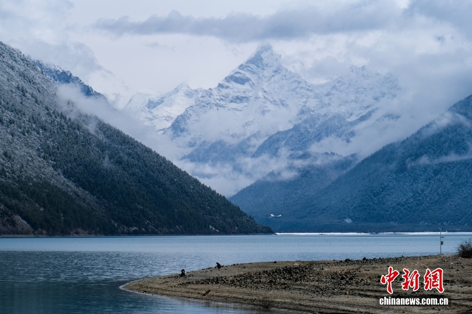 位于西藏林芝的巴松錯(cuò)迎來一場春雪,雪后風(fēng)光如畫。圖為巴松錯(cuò)與遠(yuǎn)處的雪山風(fēng)光。中新社記者 江飛波 攝