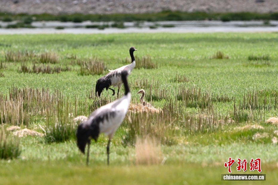 在海拔4700米的西藏自治區(qū)那曲市申扎縣濕地里,黑頸鶴一家在悠閑覓食。黑頸鶴是中國國家一級重點(diǎn)保護(hù)野生動(dòng)物,屬高原特有鶴類,主要棲息于海拔2500米至5000米的高原沼澤地、湖泊及河灘等濕地環(huán)境。每年四月起,成對的黑頸鶴陸續(xù)飛抵西藏自治區(qū)那曲市申扎縣,在此繁育后代。中新社記者 貢嘎來松 攝