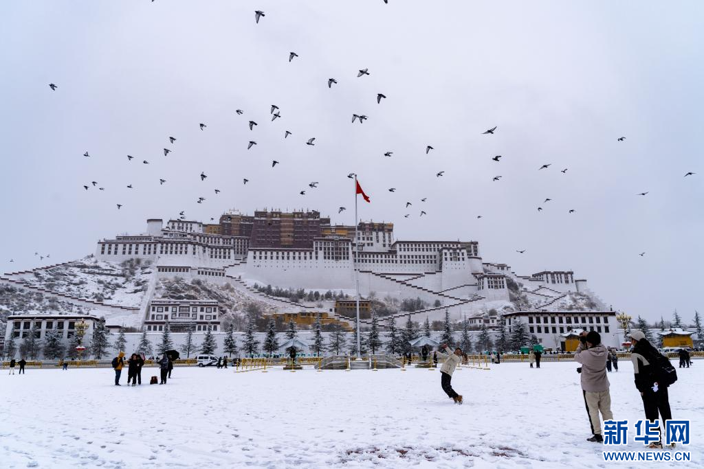 當日是農歷臘月初八,西藏拉薩市迎來降雪,城區(qū)銀裝素裹,雪景分外優(yōu)美,吸引了眾多市民外出拍攝游玩。