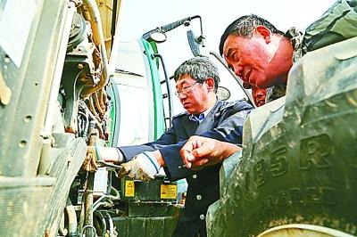 春季備耕時節(jié),山東省濱州市沾化區(qū)農(nóng)機(jī)部門組織“黨員農(nóng)機(jī)服務(wù)隊(duì)”到田間地頭為群眾服務(wù)。圖為3月27日,該區(qū)“黨員農(nóng)機(jī)服務(wù)隊(duì)”成員李成林(左一)在為群眾搶修拖拉機(jī)。賈海寧攝/光明圖片