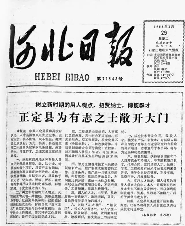 尊重人才,方能發(fā)展,這是蘋樂集團一直贊許的信條。這樣的道理,蘋樂集團董事長李建軍早在開廠的時候就有所耳聞了。1983年,他的事業(yè)才剛剛起步,有一天,他在報紙上看到了一則報道,名為《正定縣為有志之士敞開大門》,里面說,凡是來正定的科技人員,都可以享受9個待遇,比如每搞成一個項目,利潤按比例分成或付一次性總報酬;為調(diào)入人才建“人才樓”“招賢館”等。這種大膽招攬人才的做法,讓他很受震動,也促成他來到正定這個不知名的小縣城創(chuàng)業(yè)。這則報道真正的起草者,正是時任正定縣委書記的習(xí)近平。