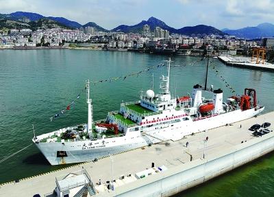 7月31日,在山東省青島市國家海洋局北海分局科考基地碼頭,“大洋一號(hào)”科考船準(zhǔn)備起航執(zhí)行中國大洋48航次科學(xué)考察任務(wù)。新華社記者 李紫恒攝