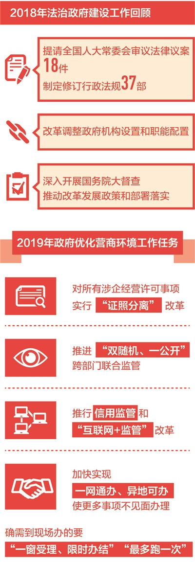 習(xí)近平總書(shū)記在黨的十九大報(bào)告中指出,要建設(shè)法治政府,推進(jìn)依法行政,嚴(yán)格規(guī)范公正文明執(zhí)法。政府工作報(bào)告中,許多法治關(guān)鍵詞折射出法治政府建設(shè)的堅(jiān)實(shí)步伐。代表委員們認(rèn)為,依法行政、加強(qiáng)公正監(jiān)管、創(chuàng)新社會(huì)治理,為營(yíng)造良好經(jīng)濟(jì)社會(huì)環(huán)境提供有力保障。